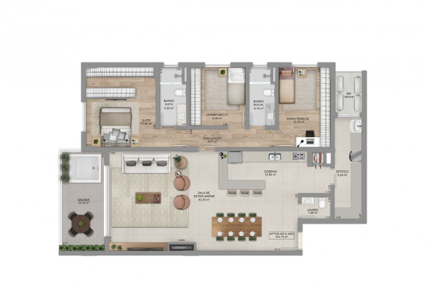 Área Total › 154,23m²