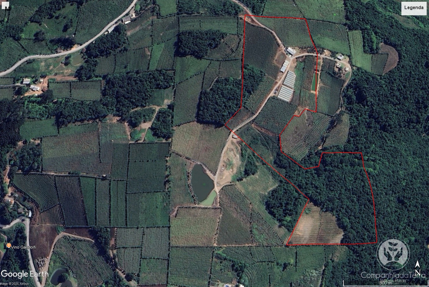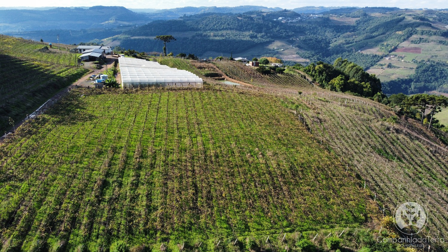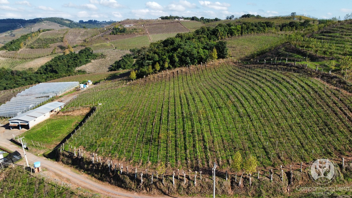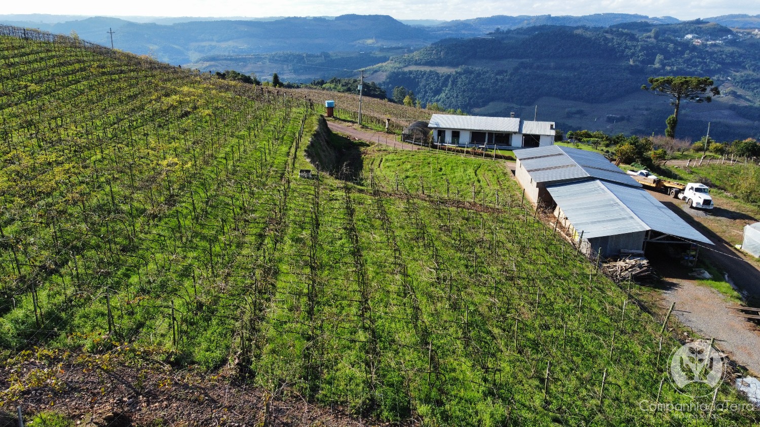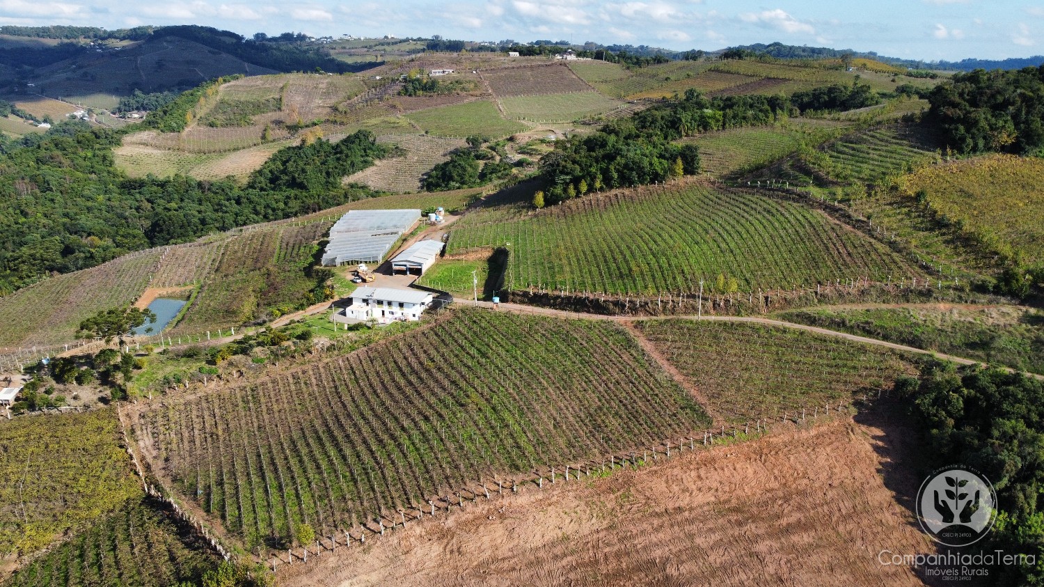 Descrição › Área de terras com 11 hectares, localizada em Monte Belo do Sul/RS. Possui vista panorâmica para vales e vinhedos, onde o clima é propicio à produção de uvas para vinhos finos.