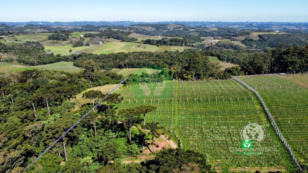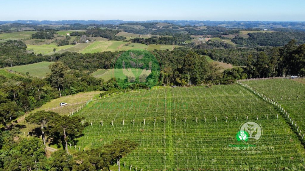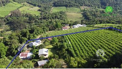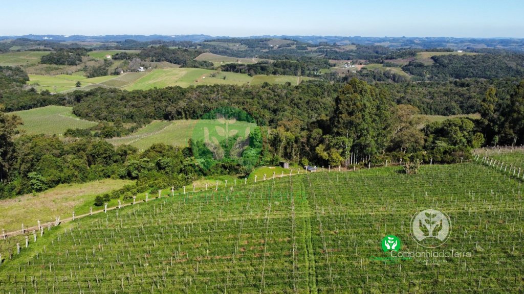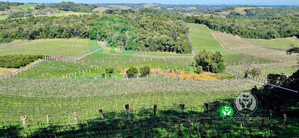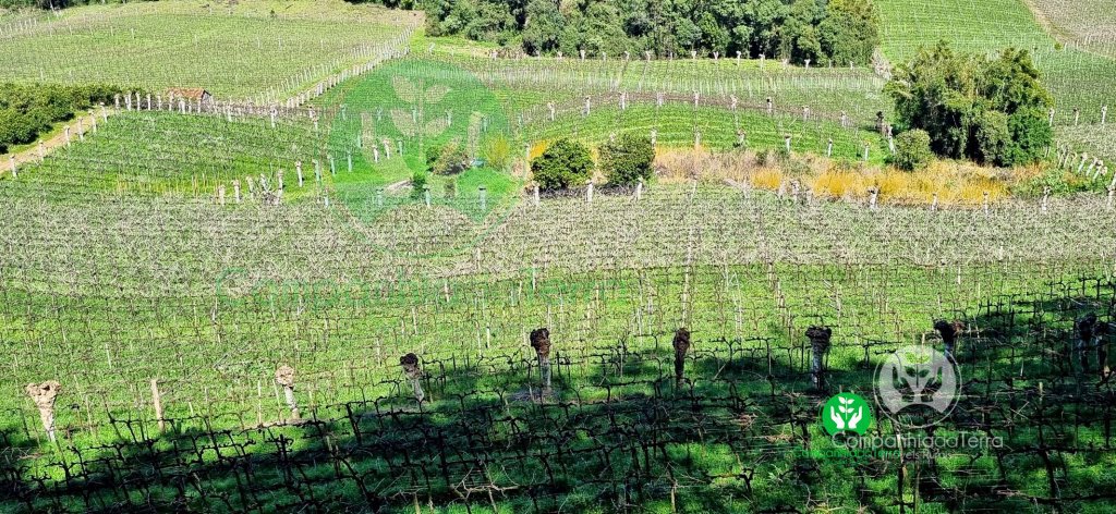 Descrição › Excelente área de terra com 9,5 hectares localizada no Vale dos VInhedos, Monte Belo do Sul / RS, sendo aproximadamente 4 hectares de parreiras seguintes variedades (Ancellotta, Isabel, Tanat, Chardonnay) produção aproximadamente 160.000 quilos anuais tem possibilidade de ampliar os parreirais. Vista panorâmica com belas paisagens. Área ideal para vitivinicultura o cultivo de uvas e a elaboração de vinhos.